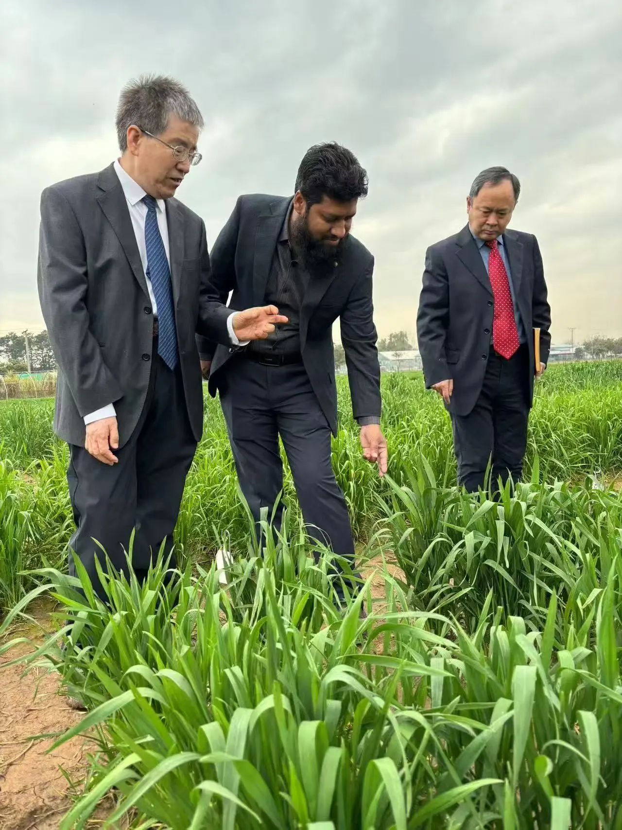 小麦分子育种专家Awais Rasheed(中间)田间指导