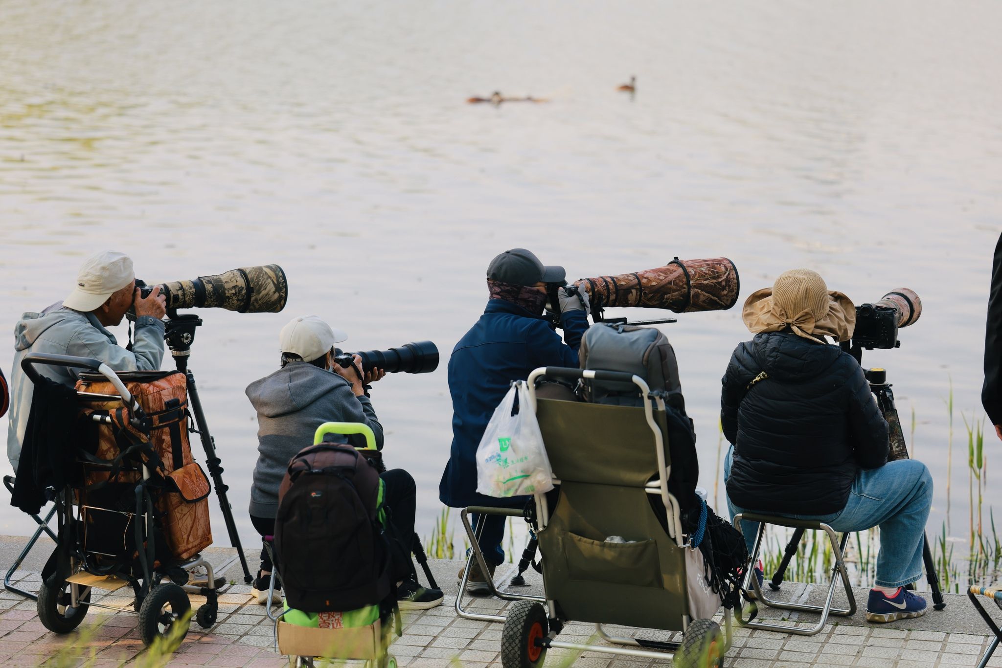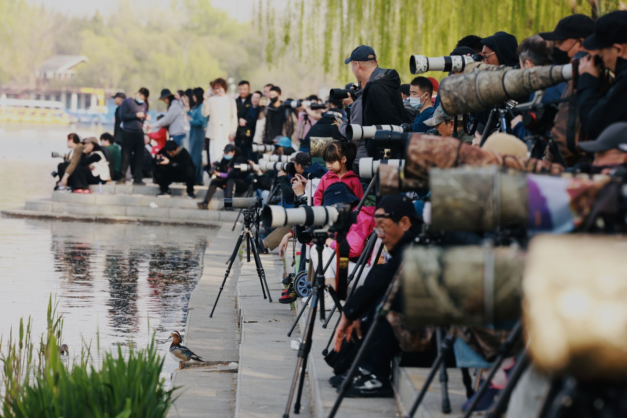 2025年4月6日,北京,玉渊潭公园吸引了大量市民游客前来玉渊潭公园观看“打鸟”景观。湖边聚集大量“长枪短炮”的摄影爱好者。