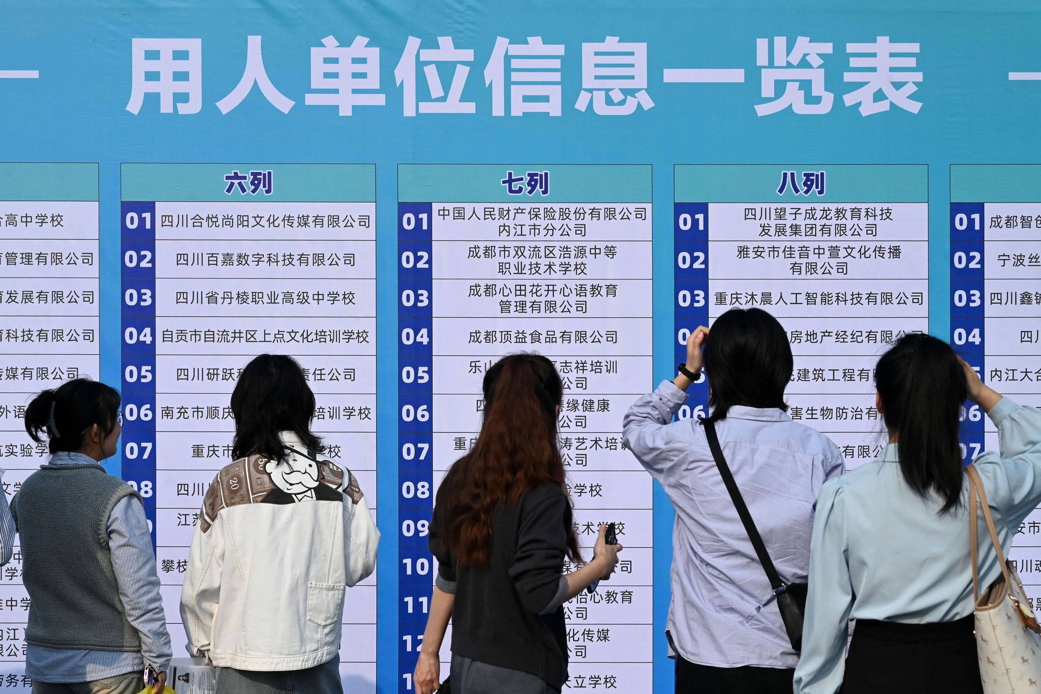 2025年4月10日,四川内江师范学院,现场应届毕业生在了解招聘信息。