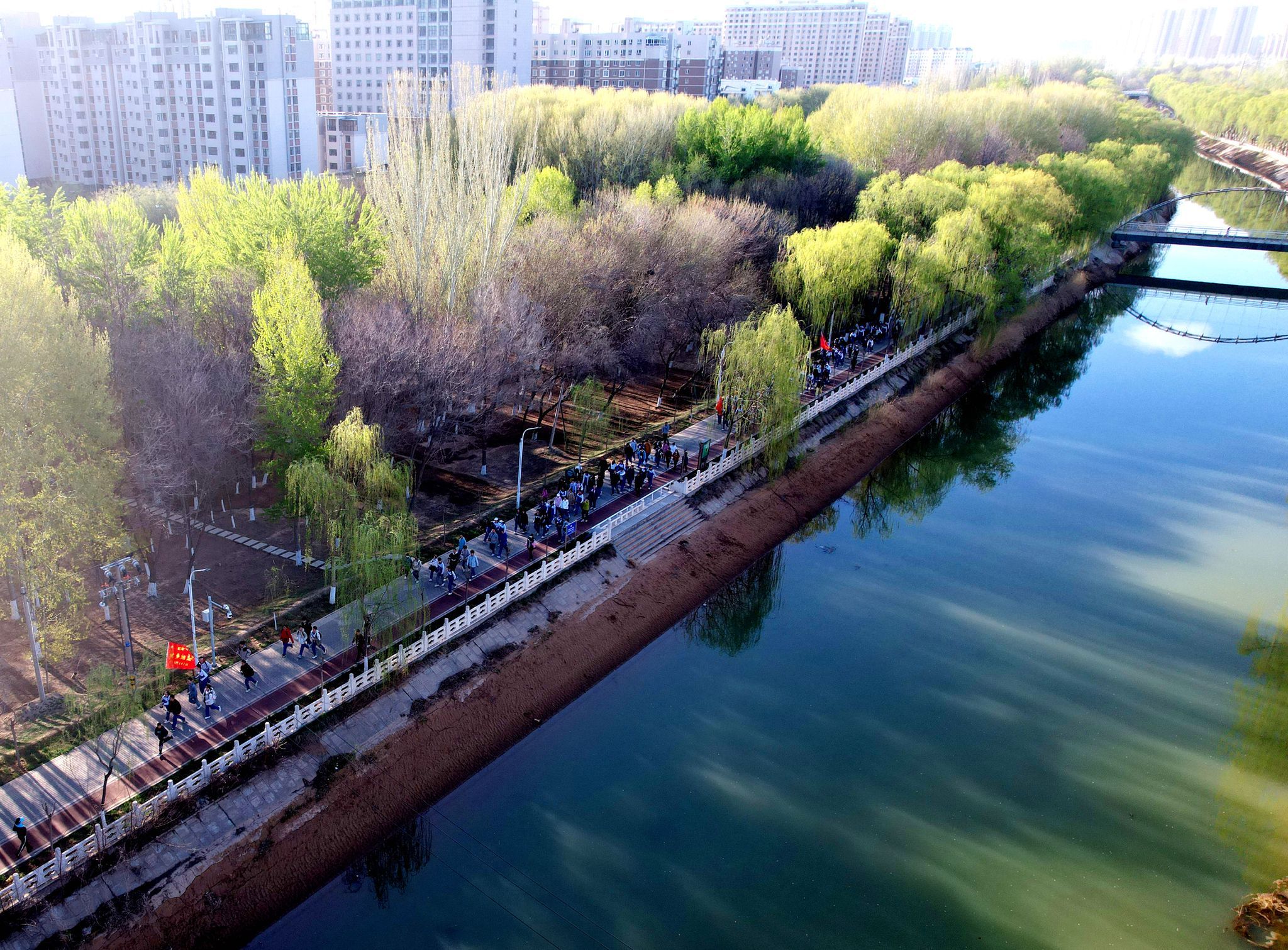 2025年4月13日,银川市一中高三年级1500名左右师生环绕唐徕渠、宝湖公园进行快乐健步走活动,缓解高考压力。