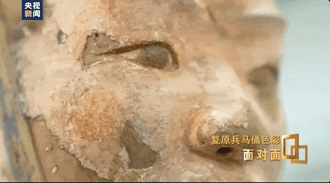 在陕西秦始皇帝陵博物院彩绘文物修复室,经过三年修复,一件原本已经碎成了100多块的秦俑,重现了两千多年前秦国军吏的样貌