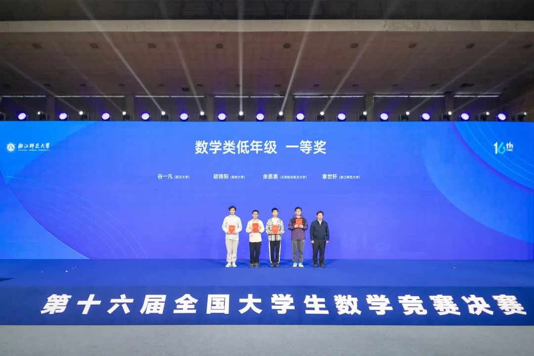 4月12日至13日,第十六届全国大学生数学竞赛决赛在浙江师范大学举行。郑州大学11名学生入围决赛,并获得1项一等奖、3项二等奖、7项三等奖。其中,数学与统计学院数学与应用数学专业2023级3班(拔尖人才班)胡锦阳同学凭借优异的表现荣获大赛(数学类低年级组)一等奖。郑州大学荣获大赛优秀高校组织奖一等奖。