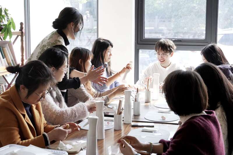 浙江省宁波市奉化区萧王庙街道青云村的众创空间,一堂非遗手作茶果子课堂吸引10余名青年学员参与。团奉化区委供图