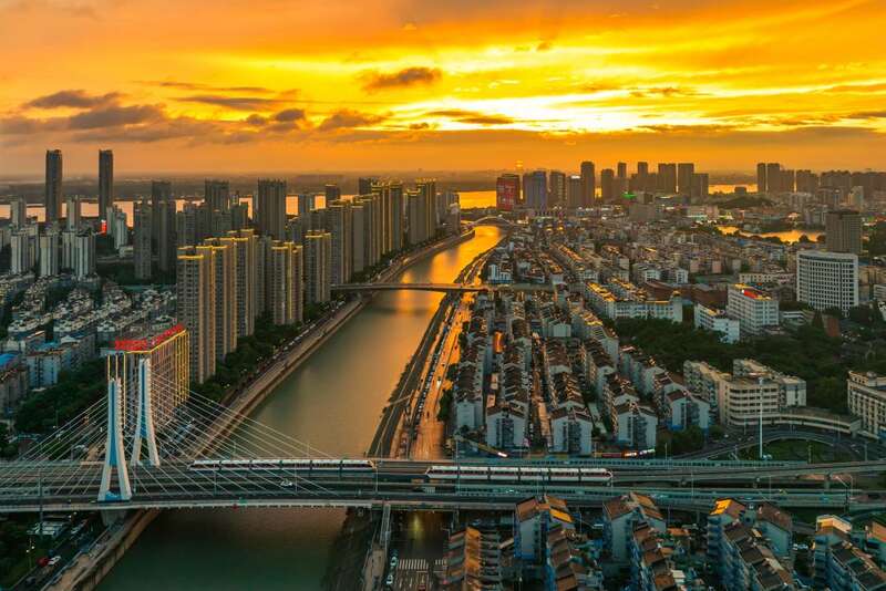 芜湖轨道交通1号线单轨列车穿越青弋江。芜湖轨道交通供图