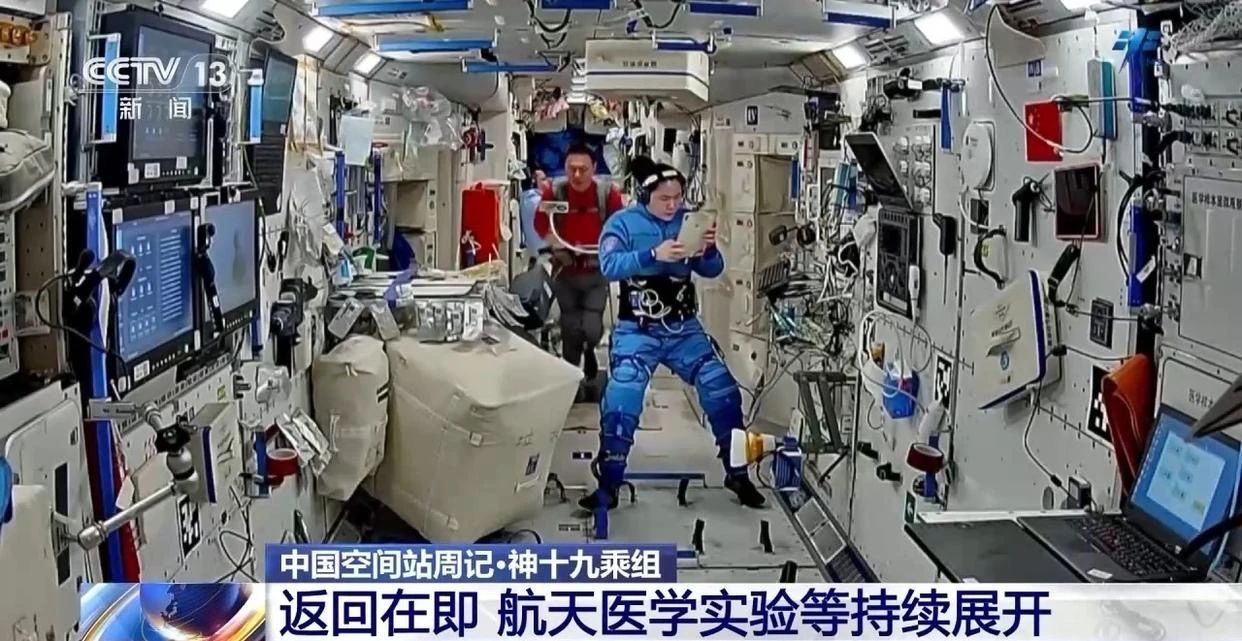 此外,航天员开展了心电图、运动肺功能、动态心电血压等多项医学检查,并积极进行失重防护。