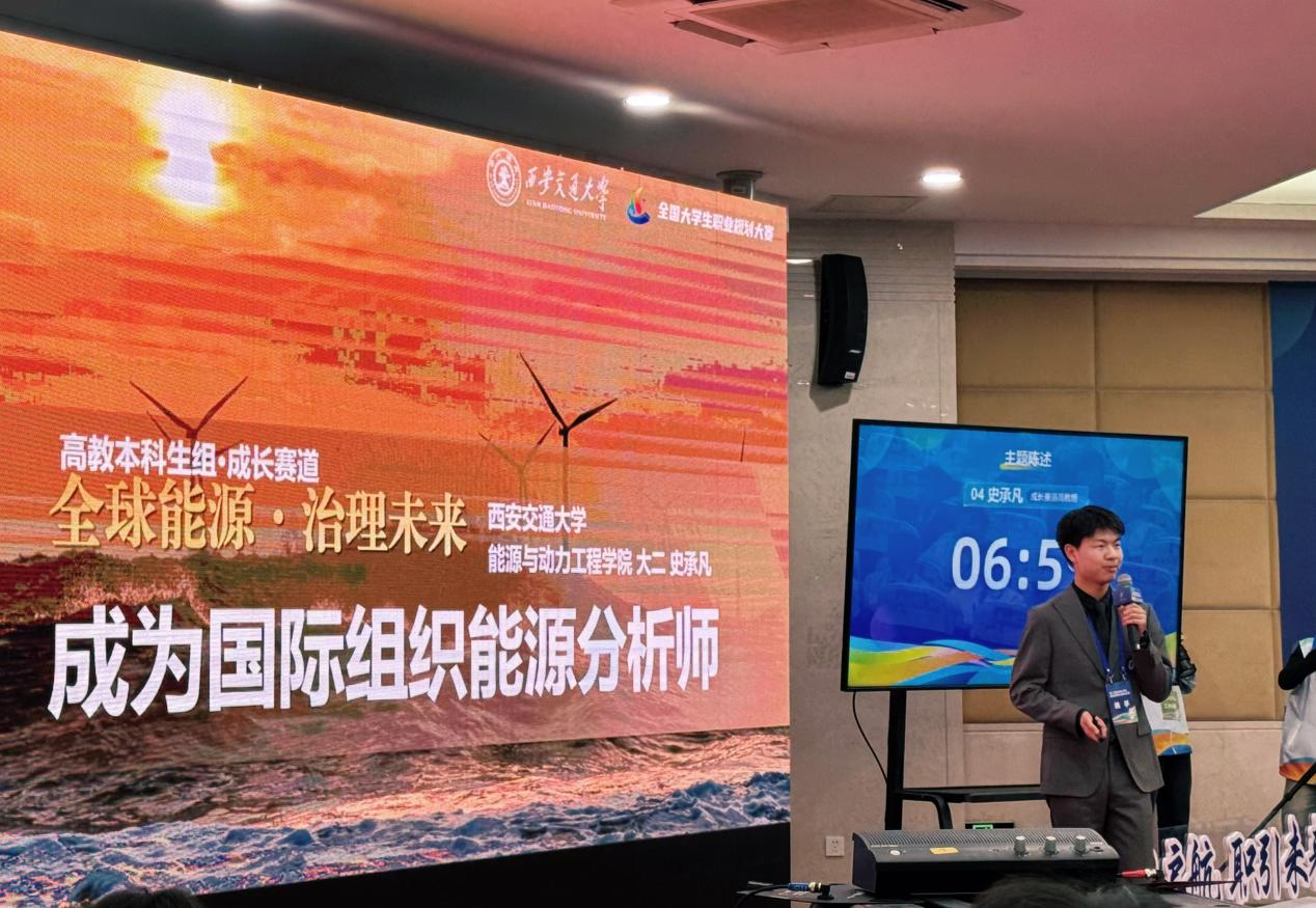 史承凡的职业目标是成为一名国际组织能源分析师,结合能源科学与经济学双学科基础,他专注提升全球视野、数据技能,并始终保持优异的专业能力。未来,他将继续以交大的国际化平台与强劲的学科优势为基点,不断深耕,尽早加入全球能源治理事业。