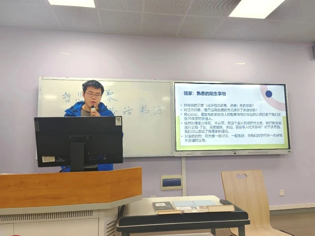 共读同一本书,思想的碰撞是在所难免的。“读到《论语·述而篇》中‘互乡难与言’章,朱子调整了经文的顺序,和何晏、皇侃有很大不同,导致对于‘与其进也,不与其退也,唯何甚’出现了解释分歧,有的同学并不赞成,大家据此引用各家注疏建立自己的一套论证体系,对如何解读进行探讨。我原来只知道朱子更改了顺序,但不明白为什么要这样改,经过大家的探讨,才发现这背后的关切。” 每次读书会的讨论,总能让大家有所收获。