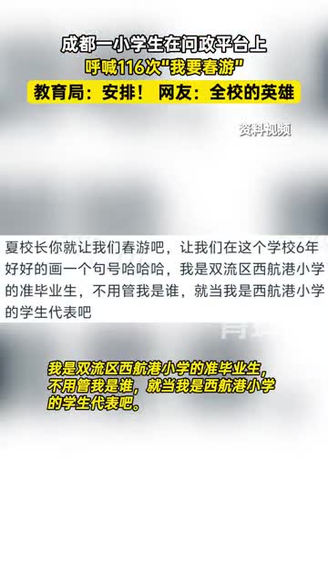 成都小学生问政平台上呼喊116次“我要春游” 教育局回复:安排!