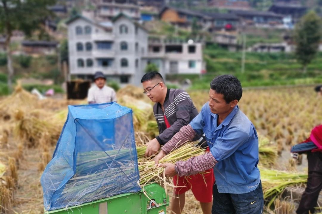张小迁和老乡一起干农活