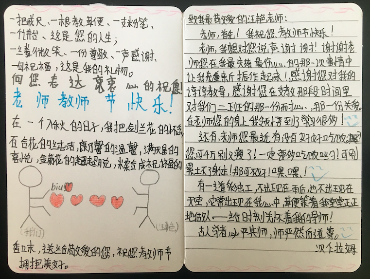 班级同学写给汪艳的明信片