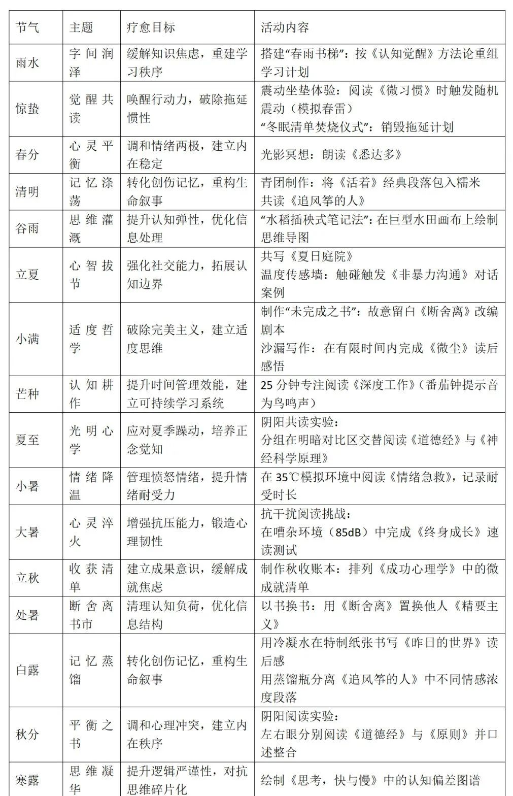 活动配置:节气主题书架(提前1周陈列相关书籍);五感体验装置(灯光/香薰/背景音)