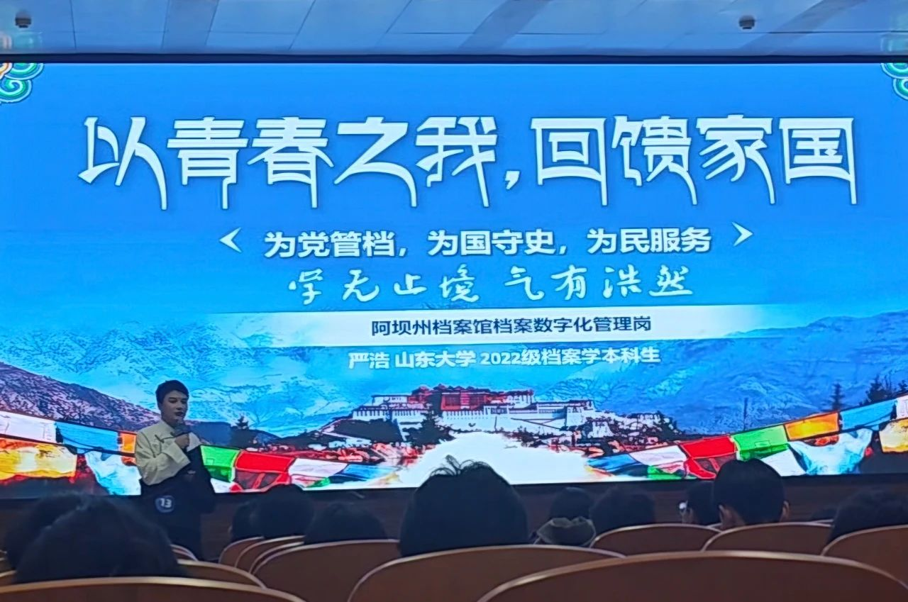 严浩的职业目标是成为阿坝州档案馆的档案数字化管理员。从小受家庭影响的他,对民族文化充满了兴趣,想要投身到民族文化传承和弘扬的实践中去。数次在档案馆、民族地区乡镇的实习实践,令他得以近距离参与民族文化建设相关项目,在历史手稿的识读和录校中锻炼了对民族文化的感知。近几年,严浩先后前往五馆两院进行档案数字化建设工作调研,对档案数字化工作有了更深入的了解,结合目标岗位实际工作场景,他立志于探索有实践支撑、有发展潜力的档案数字化建设优化路径。兰台虽小,但档案事业的发展前景却无比广阔。档案工作承担着为党管档、为国守史、为民服务的重任,严浩希望在未来能够以民族档案为基、数字化为翼,让尘封的档案重新绽放历史的光彩,让民族故事再次广为传唱。