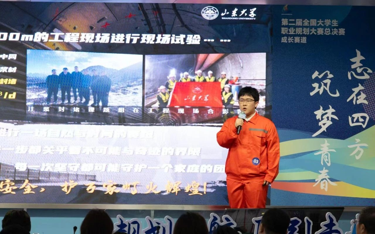 赵晨的职业目标是成为一名地下防灾领域的岩土工程师。从蜕变为“一线打灰人”讲起,赵晨以自身成长与岩土工程师职业选择的深刻羁绊为起点,分享了他对岩土人使命的独到见解,与致力于成为一名“地下防灾领域岩土工程师”的坚定信念。“向地层深处探索,向灾害源头进军,向生命禁区突围”,从参与涌水防治注浆材料的研发,到对工程实际问题的革新思考,再到智能决策系统的算力突破,近百项荣誉成果与跨越四省八市的实践足迹清晰勾勒出他为践行职业理想所积累的坚实积淀。“我愿做深地工程的‘听诊器’,解析大地的心跳,这些被守护的笑脸,就是我们岩土人最高的荣誉勋章!”