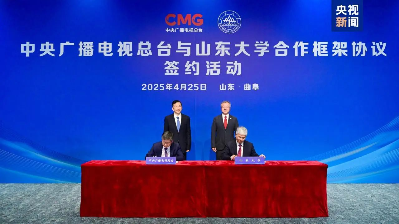 4月25日,山东大学与中央广播电视总台合作框架协议签约活动在山东曲阜举行。中宣部副部长、中央广播电视总台台长慎海雄,山东大学党委书记任友群出席活动。山东大学校长、中国工程院院士李术才,中央广播电视总台副台长齐竹泉在活动上致辞。李术才与中央广播电视总台编务会议成员姜文波代表双方签约。