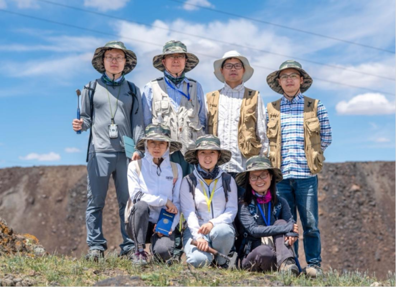 ∆李献华和李扬(后排左二、左三)带领研究团队在白云鄂博开展野外工作