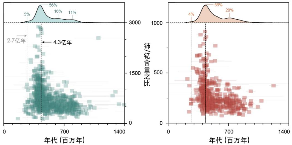 ∆氟碳铈矿(左)与独居石(右)定年结果和轻重稀土分异