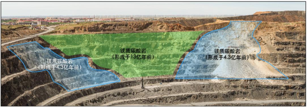 进一步的年代学研究显示,除形成于13亿年前的中元古代火成碳酸岩外,白云鄂博还广泛分布有形成于4.3亿年前的早古生代火成碳酸岩,后者主要呈脉状穿切白云岩,并与之发生反应。这说明,早古生代的确存在可能携带大量稀土资源的碳酸岩流体。