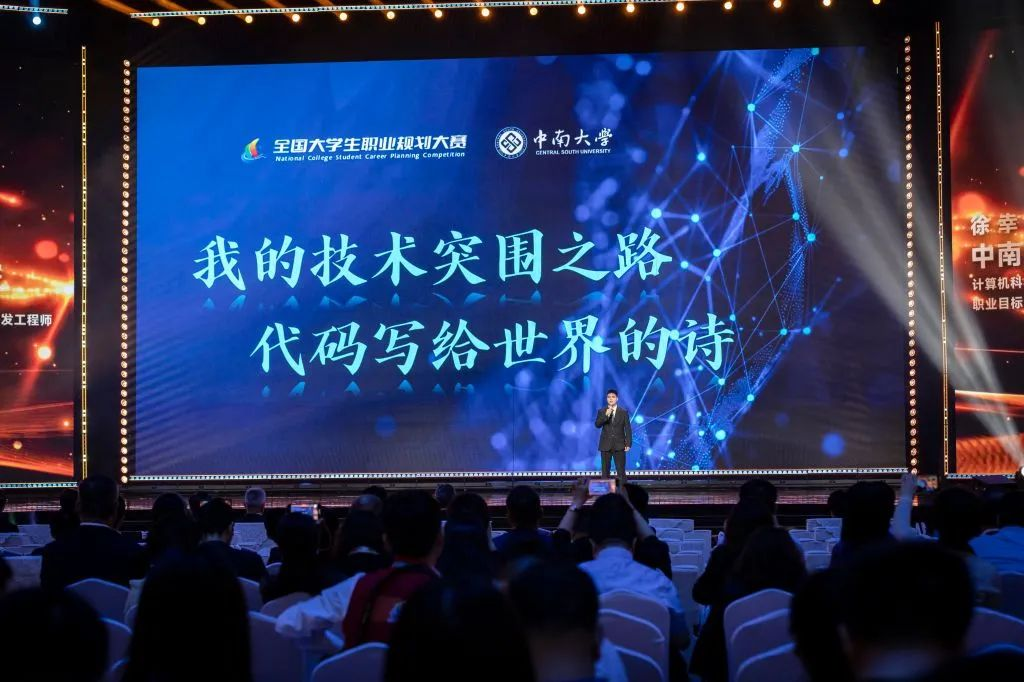 徐幸作为获奖选手代表在第二届全国大学生职业规划大赛总决赛颁奖活动上作展示