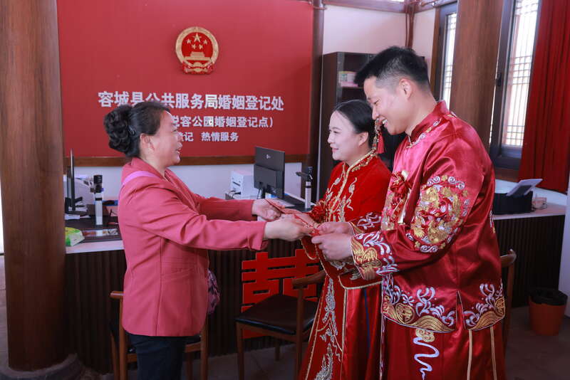 此次“雄安 我爱TA”集体婚礼是“青春雄安·共创未来”五四青年节主题活动的环节之一。来自中国雄安集团的苏文娜与爱人孙伟国在雄安新区党群工作部组织的“蒹葭系列”交友活动中,相识于悦容公园,今日又在此许下白首之约,她捧着婚书笑道:“雄安是‘媒人’,是我们的第二故乡。”