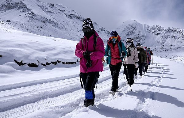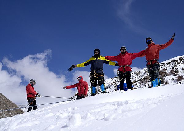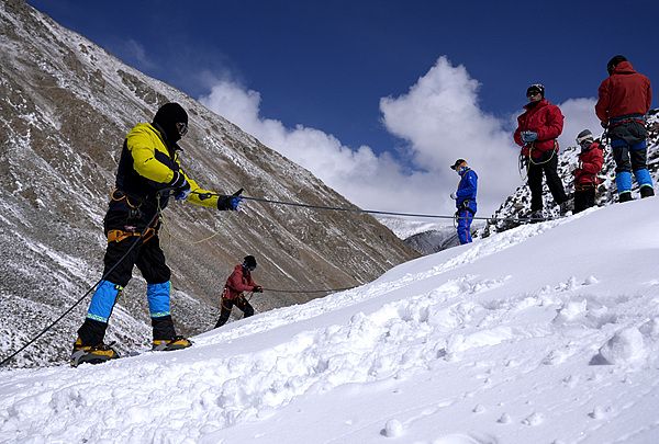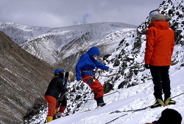 西藏拉萨:登山爱好者雪山技术训练备战西藏洛堆峰冲顶