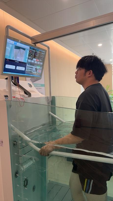 这里不仅有专业的运动健身器材,还有针对特殊场景的新玩意儿,如水疗跑步机,利用水的阻力和浮力,帮助超重人群在减少关节损伤的同时有效减重。