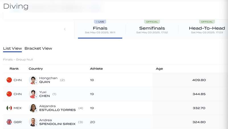 5月3日,2025年世界泳联跳水世界杯总决赛在北京国家游泳中心继续进行。在刚刚结束的女子十米跳台决赛中,中国队选手陈芋汐夺得冠军,全红婵获得亚军。这是二人继此前的世界杯瓜达拉哈拉站和温莎站后,再度包揽该项目冠亚军。