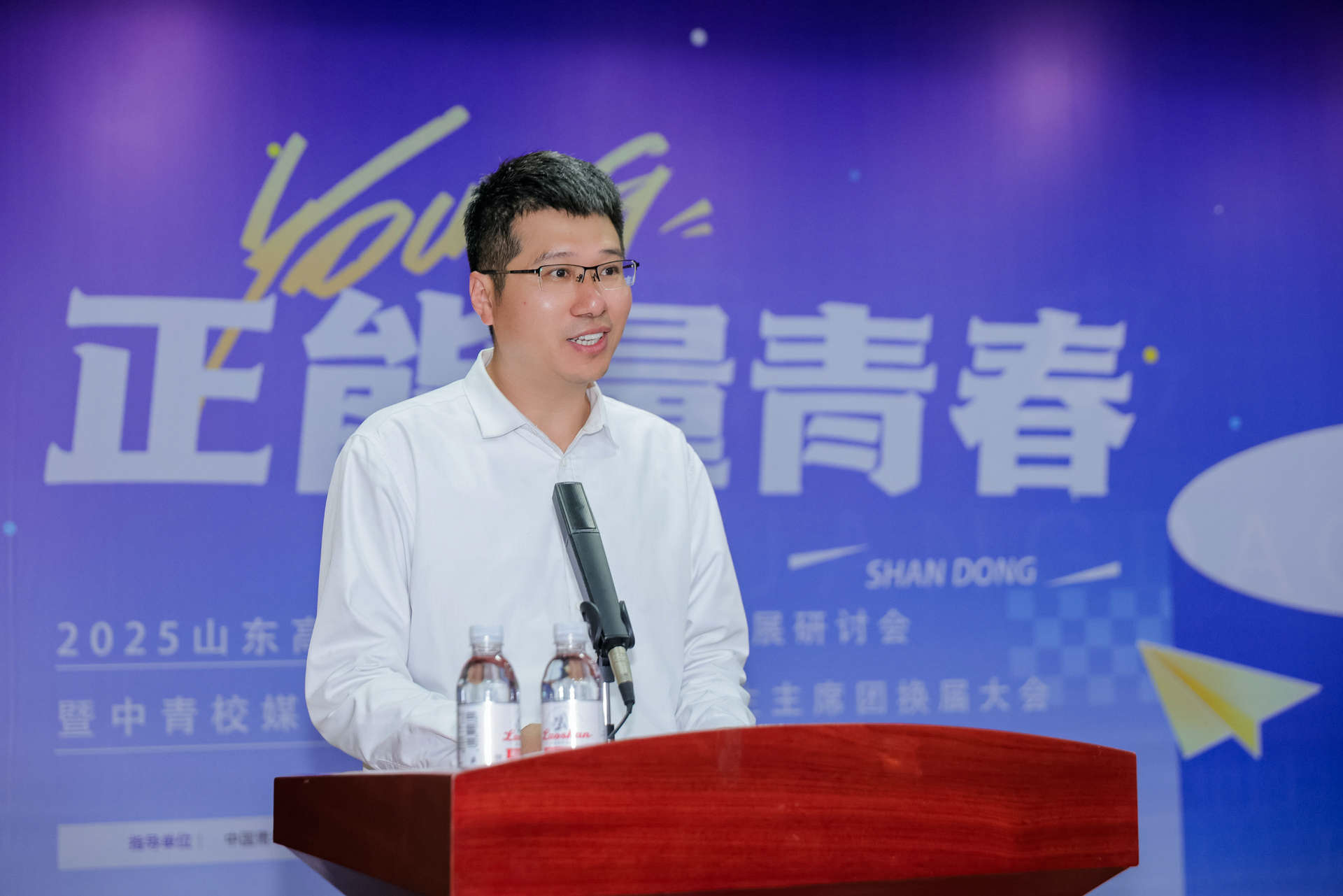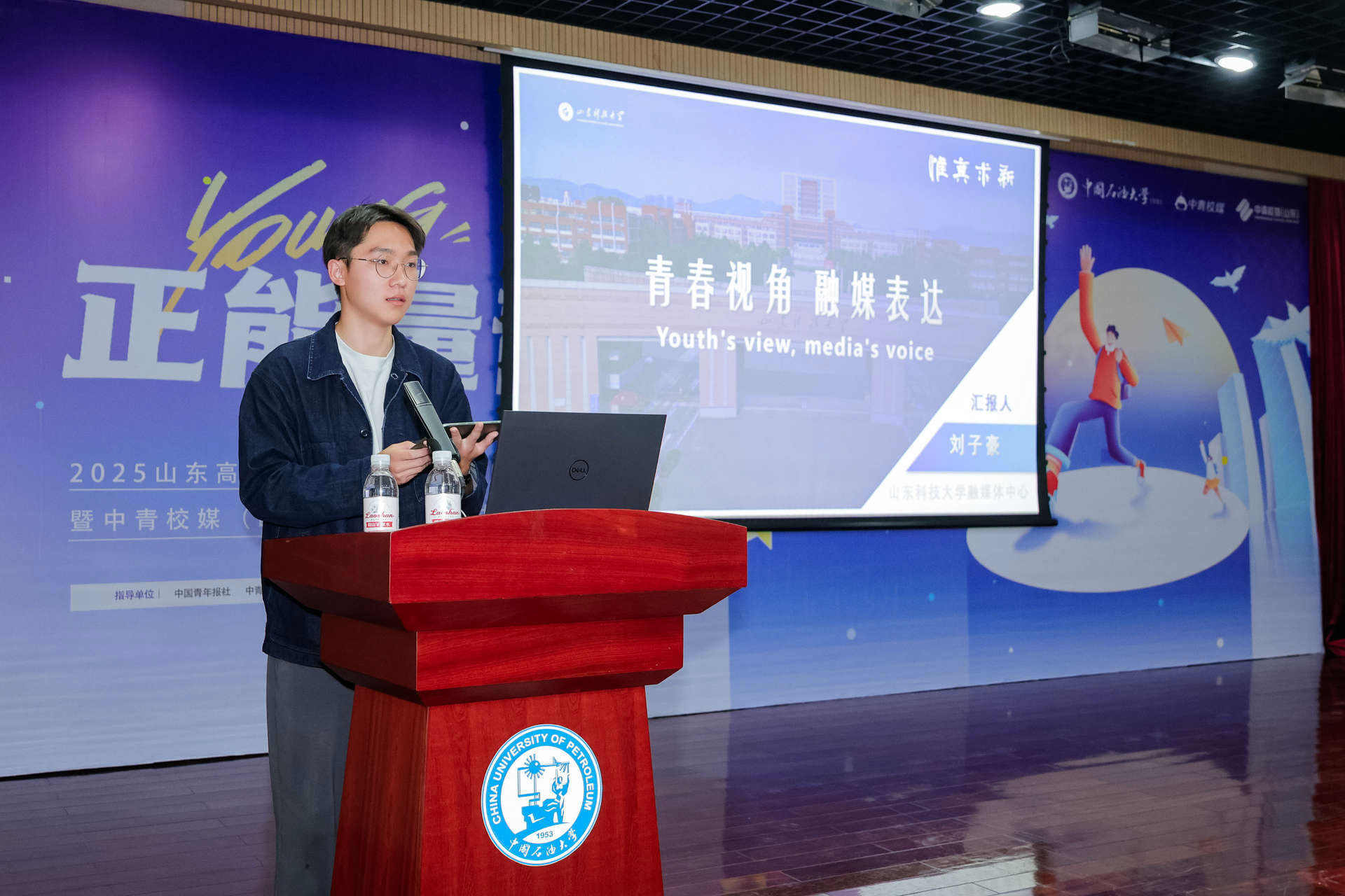 中国石油大学(华东)党委宣传部副部长徐永涛,中国石油大学(华东)校团委副书记姜士绅,中国青年报社记者、中青校媒秘书处代表梅从政,山东师范大学校团委宣传部部长王锦及全省20余所高校近百名师生出席会议。