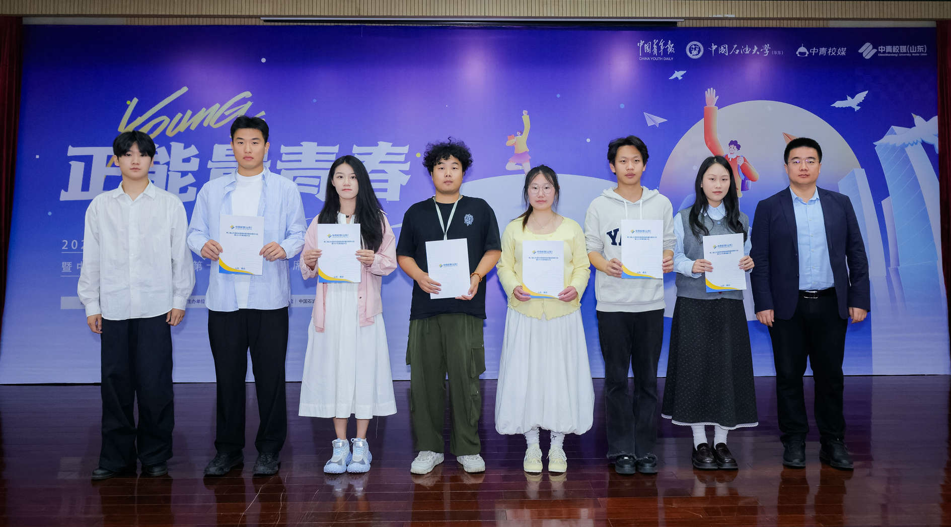 会中,中国石油大学(华东)校团委副书记姜士绅和中国青年报社记者、中青校媒秘书处梅从政为中青校媒(山东)第十三届主席团成员颁发聘书。