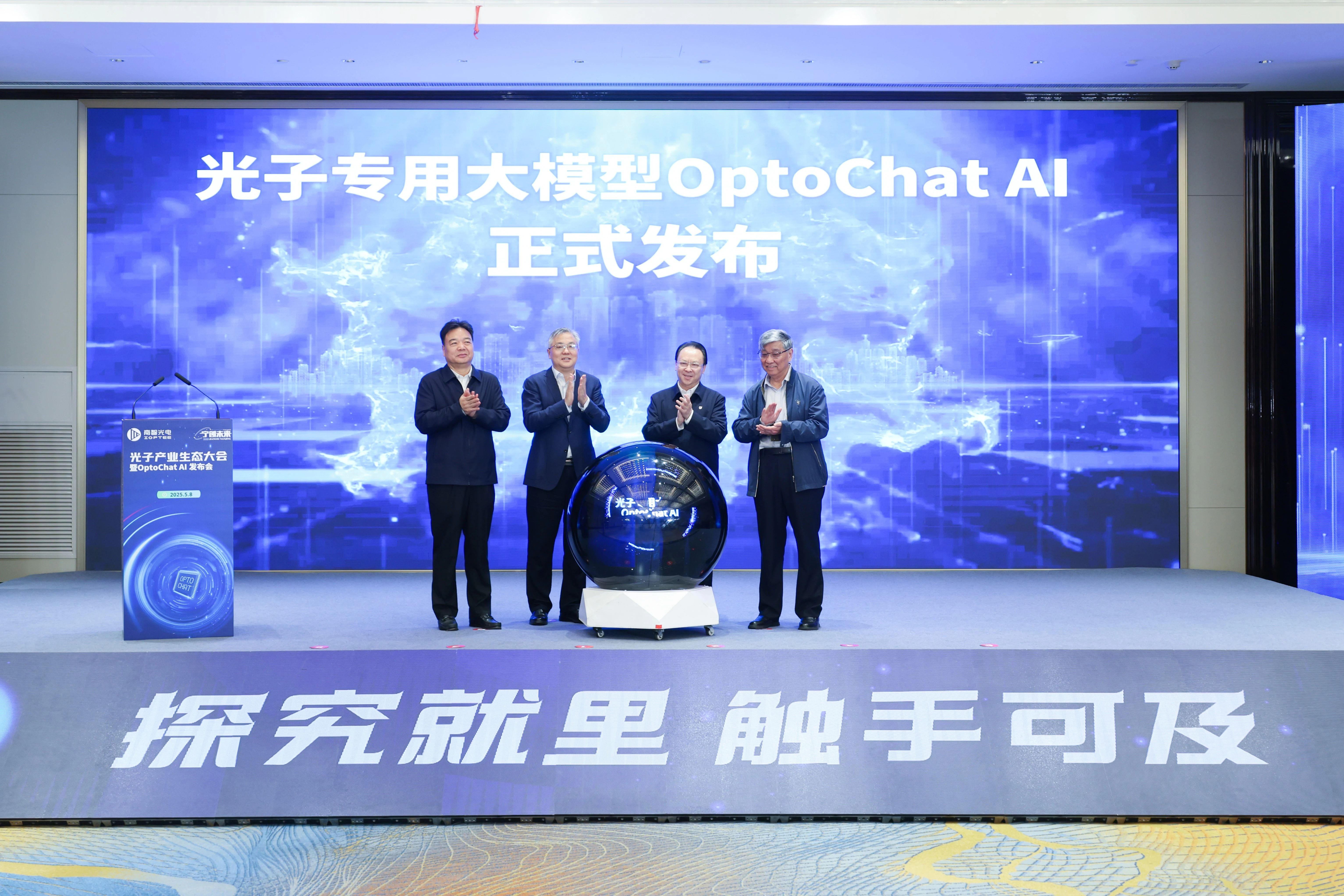 2025年5月8日,以“AI赋能,光启未来”为主题的光子产业生态大会在宁举行。会上,由“南大系”新研机构——南智先进光电集成平台牵头研发、凝聚校企联合力量打造的国内首款光子专用大模型OptoChat AI正式发布。