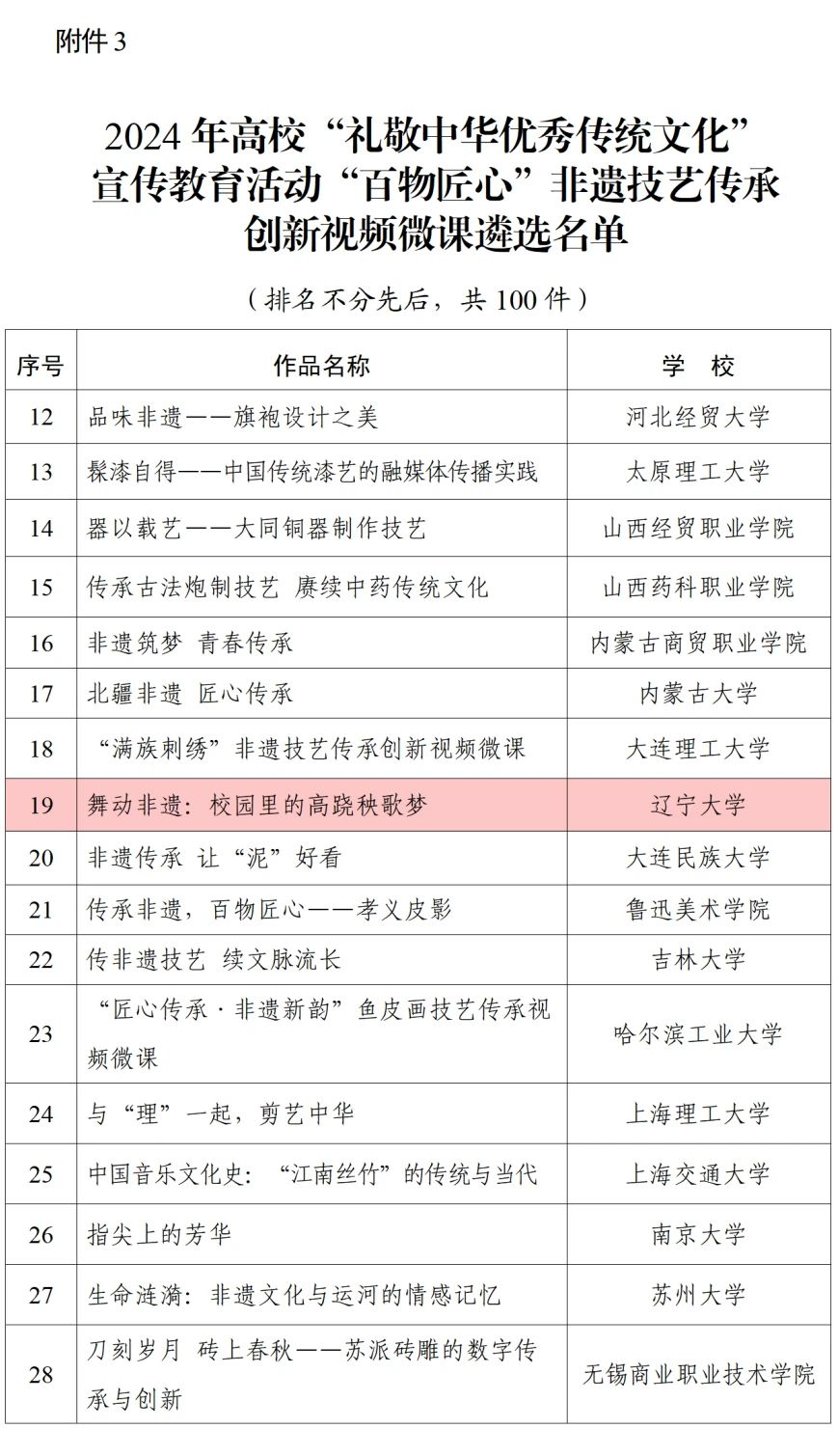辽大作品入选2024年高校“礼敬中华优秀传统文化”宣传教育活动“百物匠心”非遗技艺传承创新视频微课