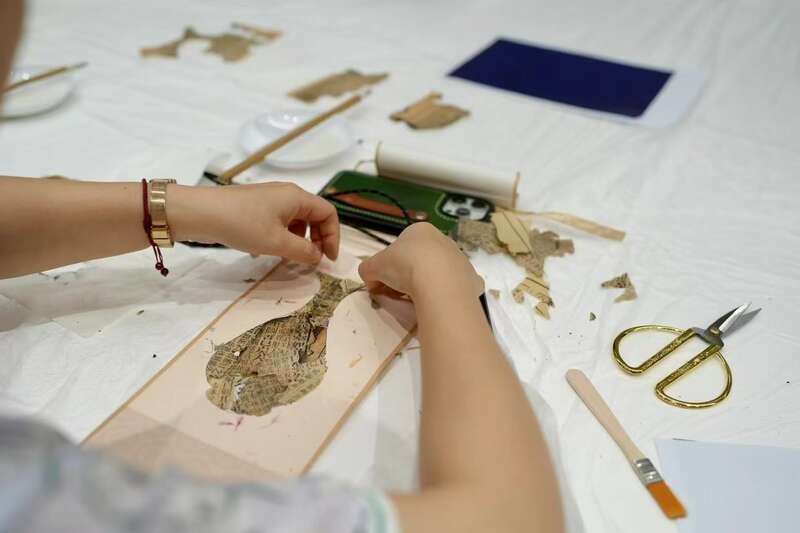 李思琪说,动手做出这些作品,是“直接和文物发生连接的方式”,它们不再冷冰冰,而是可触摸、可感知的,就像一名学员是在制作螺钿书签的过程中才知道“螺钿有多薄”,每件工艺品背后要付出多少精力。