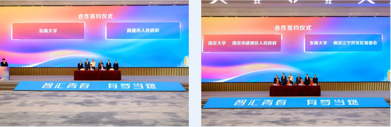 在战略合作签约环节中,东南大学和南通市、南京市江宁区人民政府分别进行了合作办赛签约,南京大学与建邺区人民政府进行合作办赛签约。