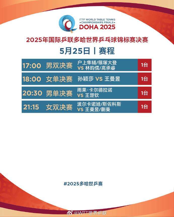 今晚的男单决赛,王楚钦将对阵巴西名将雨果·卡尔德拉诺。女双赛场,王曼昱/蒯曼将迎战波尔卡诺娃/斯佐科斯。一起期待,为中国队加油!