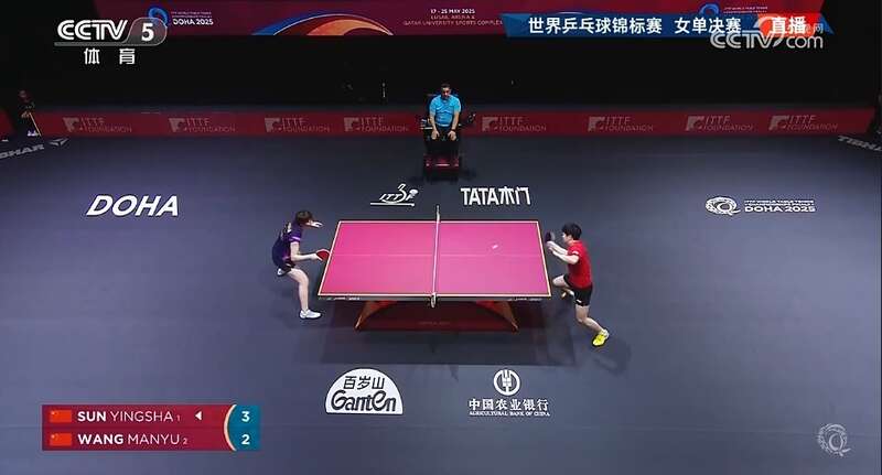 5月25日,在多哈世乒赛女单决赛中,孙颖莎4比3战胜王曼昱,获得女单冠军。