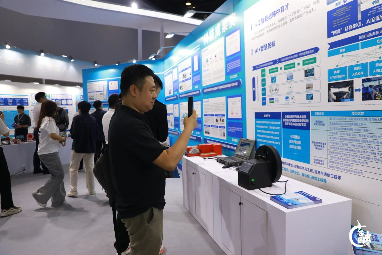 中国民航大学展区分为时代使命、党的领导、科创赋能、立德树人和国际交流五个篇章,充分展现了中国民航大学建校至今在不同时代的历史使命与担当。近年来,学校对标研究型特色类大学的发展定位,深化民航运输业和航空制造业“两业融合”,聚焦高素质科技创新人才、专业技术人才和国际化人才培养,深耕可持续航空燃料、城市空中交通、国产大飞机适航、AI+智慧民航四条科技创新战略主赛道,加快推进教育科技人才一体化发展。