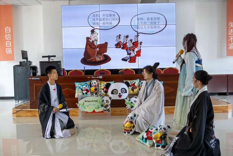 此外,团队精准把握“一带一路”政策机遇,创立了熊猫文化俱乐部,让更多的国际友人爱上国学。“团队以国学资源为内容,以情境教学为载体,以沿线国家为阵地,通过中英双语情景小剧场、经典沐心情境课程,深耕中华文化土壤,借熊猫夜校、汉语课堂和俱乐部活动搭建交流桥梁。”杨灿说道。