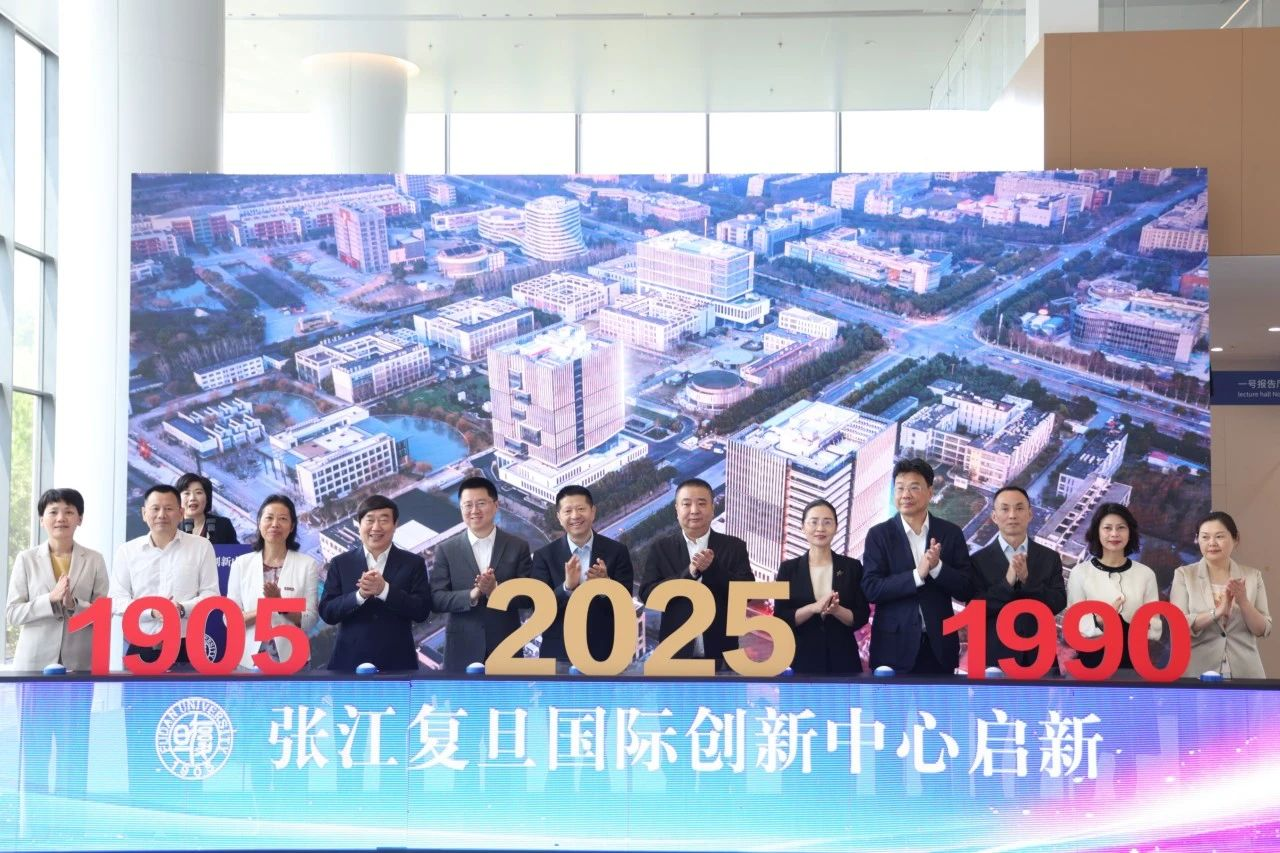 复旦大学党委书记裘新,校长、中国科学院院士金力,中国科学院院士许宁生,复旦大学常务副校长许征,上海建工集团总裁叶卫东,上海市科委副主任屈炜,浦东新区副区长张娣芳,浦东新区张江科学城建设办公室主任肖健,华东建筑集团股份有限公司副总经理、副总裁周静瑜,复旦大学校长助理、科研院院长、中国科学院院士彭慧胜,上海张江(集团)有限公司总经理陈微微,张江高科股份有限公司董事长刘樱共同为创新中心启新。