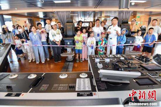 民众参观“雪龙2”号极地科学考察破冰船驾驶室。