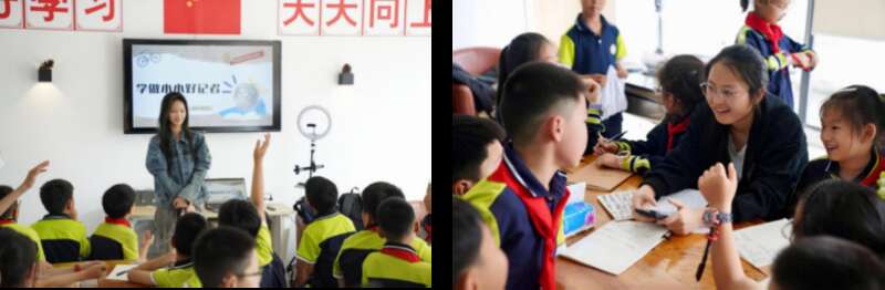 活动中,新闻学院师生以“新闻”为载体,精心设计沉浸式教育体验,打造跨学段融合的德育课堂。学院师生化身“新闻导师”,以临近生活的“小切口”引导临安附小学生走进新闻世界,围绕新闻的基本要素、采访技巧和提问礼仪进行系统教学,帮助小学生掌握基础传播技能的同时,引导他们在问题设计与倾听中培养观察力与同理心。
