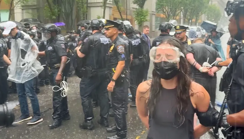 《纽约邮报》称,当天在纽约曼哈顿,愤怒的蒙面示威者对警察大喊“混蛋”,并向一辆试图离开美国移民法庭所在地的无标志白色车辆投掷物品。视频显示,当时现场有6名身穿制服的美国国土安全部官员一边大喊“后退,后退”,一边将示威者推向旁边。大约两分钟后,这辆车得以驶离,但随后现场陷入混乱,近40名警察继续与示威者发生冲突。