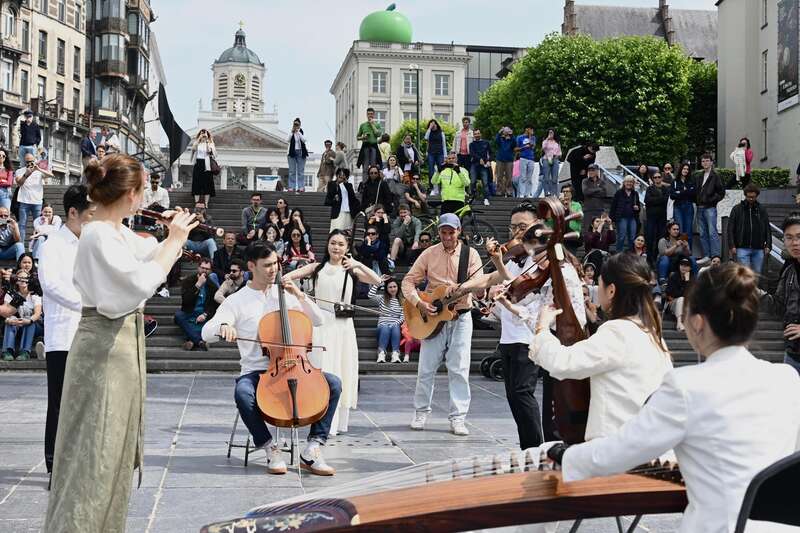 中国和比利时的文明交流历史久远,2025年是中国与欧盟建交50周年。当地时间6月9日下午,一场快闪活动拉开了“文明遇·鉴:中国大运河文化江苏周”序曲,江苏民乐《好一朵茉莉花》和惊艳的戏服起舞,引得当地市民驻足围观。