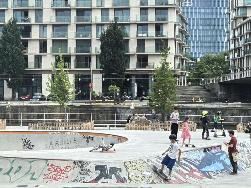 比利时运河边孩子们在玩耍