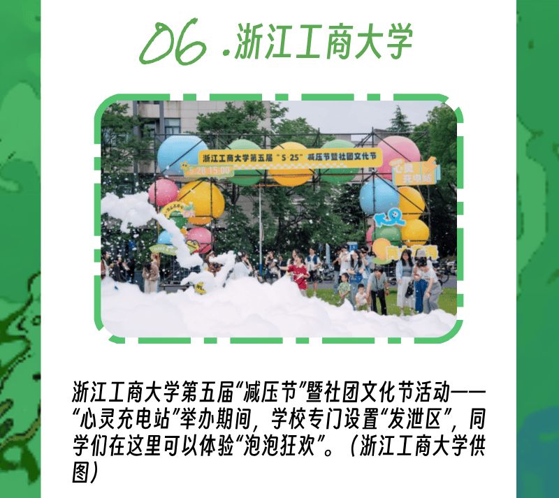 给压力找个出口,浙江工商大学举办第五届“减压节”暨社团文化节活动——“心灵充电站”,无论i人、e人都能找到专属减压方式。集市区汇聚减压体验,如DIY沙画、拼贴诗、手打果茶,让压力在创意中消融;发泄区设置泡泡狂欢、碰碰球大战等项目,用运动释放情绪;躺平区提供音乐疗愈,吸引同学们纷纷卸下“心理包袱”。