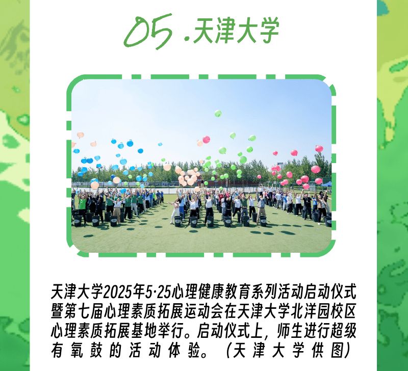 以运动浸润心灵,天津大学举办了一场酣畅淋漓的心理素质拓展运动会,开展多元化体验项目。通过沉浸式体验、团队协作和体能挑战,帮助大学生在流汗中锤炼抗压能力,在合作中领悟信任与责任,在突破中塑造积极心态,为同学们带来身体和心灵上更多的愉悦与放松,成为浸润生命的良好体验样本。