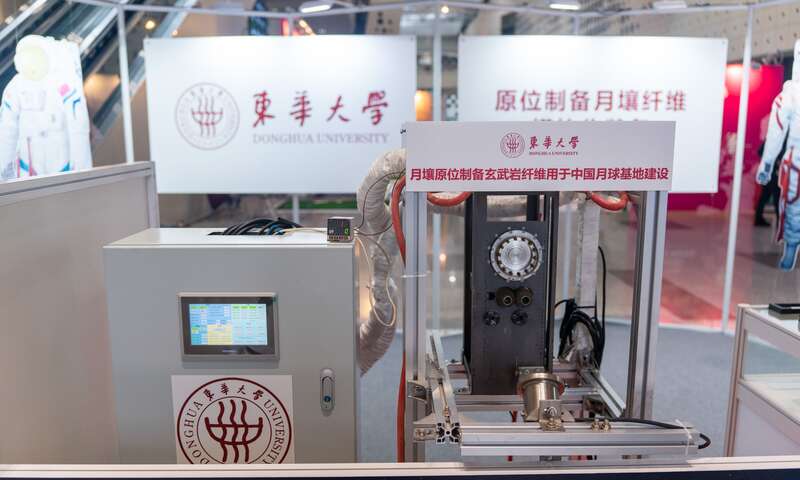 东华大学教授、博士生导师、先进纤维材料全国重点实验室成员汪庆卫介绍,东华大学朱美芳院士、成艳华、汪庆卫团队此前获得嫦娥五号真实月壤500毫克,研究团队根据真实月壤的组分和特性,自制模拟月壤,通过1400-1500℃高温熔融与真空牵引技术,成功制备出直径仅10-20微米(头发丝的1/5到1/6)的超细纤维。为了能在月球“服役”,研究团队自主研发了一台可用于深空环境的月壤纤维自动成纤装备,从而克服月球上无人、真空、低重力的环境。