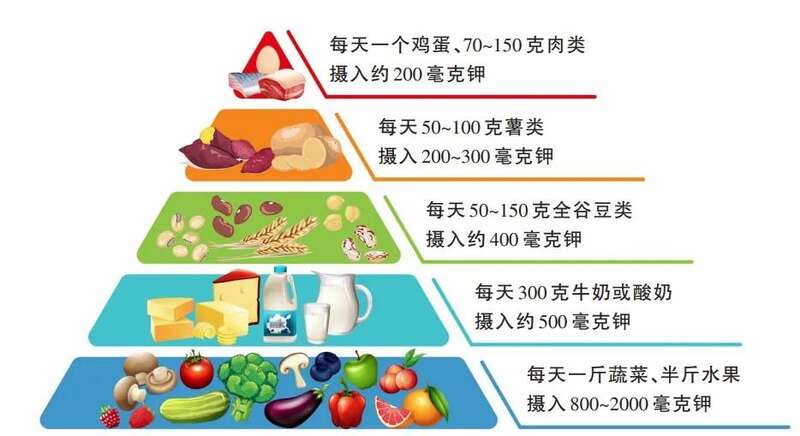中国疾病预防控制中心营养与健康所研究员张倩表示,可以根据下面这张膳食补钾“金字塔”来补充。