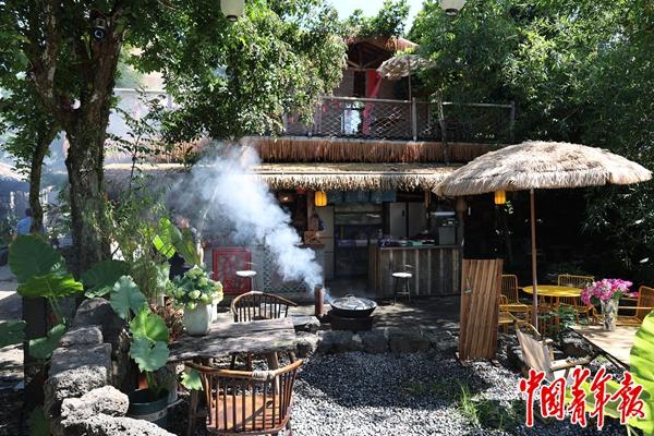 一些曾经短暂停留的他乡客也选择留在海南,将其他地区的传统文化带进这座村庄。“之前我们都是来海南旅居,2021年年底,我们决定来海南定居。”来自北京的春风十里非遗文创体验院主理人曹立雁介绍。两年前,他们决定在这里打造一间非遗文创体验院,如今小院的屋内,游客亲手扎染的衣服已经晾挂在悬梁处。“未来,我们可能还会加入茶文化、少数民族服饰等体验项目,开展更多非遗文创活动。”曹立雁说。