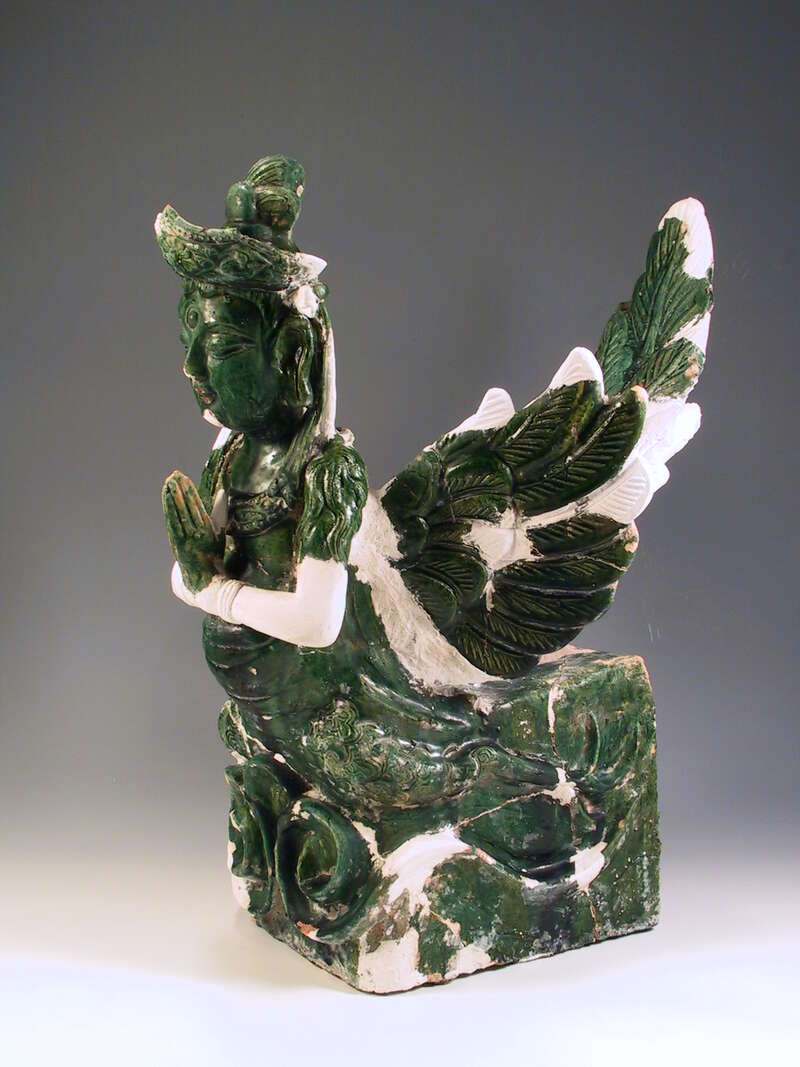再比如,3号陵在考古中出土的迦陵频伽达150多件。迦陵频伽,它有一个更好听的名字“妙音鸟”。唐代的敦煌壁画中有妙音鸟,福建泉州开元寺的屋檐下方也有妙音鸟,这只“人首鸟身”、来自印度的乐神,跃上屋脊,是中国古代建筑向唐向宋演变的过程,在西夏发扬光大。