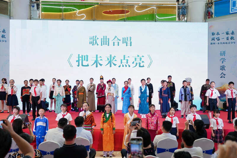 “鄞木一家亲·共唱一首歌”活动中,木里青少年与鄞州小伙伴同唱《把未来点亮》。受访者供图