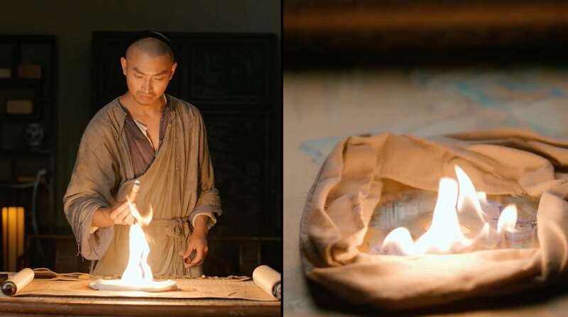 小说作者李屹东担任该剧的修复技术指导。剧中生动呈现了古画修复的多种精妙技艺,还特意还原了过去处理返铅曾使用的高难度绝活——火烧法,即将铅粉发黑的部分用湿纸围上,倒入白酒,点火烧之,铅粉即变回白色,去除古画表面的污渍,修复破损之处,全补古画残缺的色彩,还原质感。